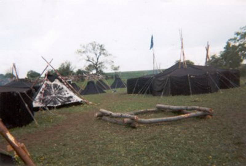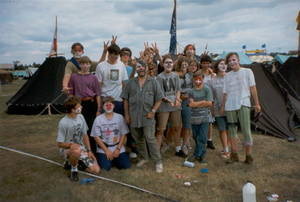 Als sich gegen 6.00 Uhr die Mannstedter, 7.00 Uhr die Neudietendorfer und 8,00 Uhr die Sollstedter trafen, waren sie relativ verschlafen. Aber dies änderte sich bald, als wir hochmotiviert den 2 km langen, vom Wasser und Schlamm geprägten Weg zum Lager antreten durften. Auf derr Lager angekommen mußten wir noch auf unsere Kisten mit den Zelten warten. Als diese dann gegen 15.00 Uhr ankamen, bauten wir unsere Zelte auf und schritten dann zur Lagereröffnung. Hier feierte das Lagerlied Premiere, außerdem gab es ein “Sockenhaftes” Kennenlernspiel und die Lagerleitung erklärte uns Örtlichkeit(en) und Wesen der Programmzentren. Unser Lagerleben war vom Zeltaufbau, Feuer machen, selber Kochen, Singen und Kontakte knüpfen geprägt. Besondere Höhepunkte waren unser individuell ausgelegter Hajk zur Pfadfinderburg Ludwigstein, hier übernachteten wir im Turm, trafen eine Jungschar aus Hamburg und badeten im eingebauten Hallenbad, eine Erkundung in das ehemalige NS-Arbeitslager Hirschhagen, ein Außenlager von Buchenwald wo Sprengstoff produziert wurde, der Gottesdienst, die Pastorin lief mit einer Lilie im Haar und Tramperschuhen über den Platz, der Markttag, bei der Aufführung des Zirkus “Meyer-Mumpitz” wurde ein 20-DM-Schein verheizt und wieder herbeigehext und unsere Teilnahme an den Landeswassersockenspielen, wo wir mit Socken an Händen und Füßen nicht nur um die Wette schwammen. Als das Lager mit der Schlußveranstaltung zu Ende ging, waren wir uns einig: Trotz nasser Klamotten und schlechtem Wetter hat sich die Teilnahme an diesem gigantischen Lager gelohnt.
