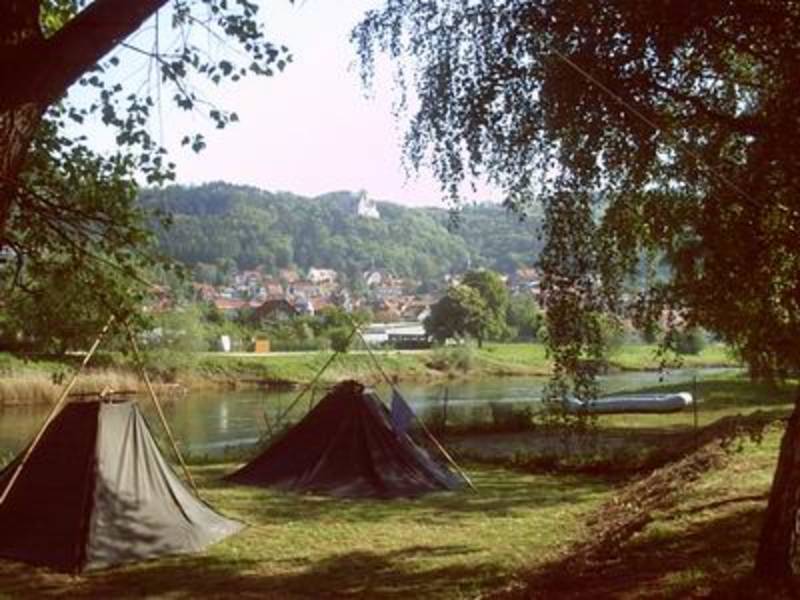 Mit Paddeln und Schlauchbooten ausgerüstet hieß es für die rund 50 Pfadfinderinnen und Pfadfinder der Stämme Stamm Drei Gleichen, Stamm Sachsen-Coburg und Gotha sowie Stamm Tenneberg auf ihrem diesjährigen Pfingstlager vom Donnerstag, dem 27.05.2004 bis zum Montag, dem 31.05.2004 die Werra zu bezwingen. In Creuzburg startete die Tour und in Treffurt wurde nach 35 Kilometern dann das Lager aufgebaut.
