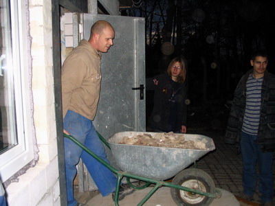 Der Pfadfinderförderverein “Fritz Riebold” e.V. Neudietendorf hatte hierzu zum “Subbotnik” eingeladen. Robert Gschweng, Tobias Trinks Jessica Weiß, Maria Stein, Martin Wittchow, Tom Zimmermann, Daniel Fischer, Dorothea Ludwig, Marcel Hoyer, Pierre Wolf, Stefan Winzer, Jessica Walther, Michael Koch, Johannes Hoffmann, Hannes Wolf, Anna Schmidt, Alexander Meyer, Markus Ackert und Jörg Baier nahmen Schaufel, Spaten und Schubkarre in die Hand, um das überflüssige Gestein des ehemaligen Fundaments und einiger alten Wände aus dem Hauptgebäude in Container zu transportieren, um hier im Anschluß Leitungen für Wasser und Gas verlegen lassen zu können. Von Vormittag um 10 bis zum späten Abend hatten die Pfadfinder damit zu tun, um alles fertigzustellen. Geholfen hatten auch die Anneli und Rolf Heinze, die Gasstation “Drei Gleichen” und der Containerdienst Friemar um einen zusätzlichen Container kurzfristig zu organisieren. Zum Schluß gab es soviel Abraum, das selbst dieser zusätzlich georderte Container nicht reichte und auf dem Platz musste ein vorläufiger Steinhaufen angelegt werden. Als Dankeschön für die wirklich gelungene Arbeit gab es am Abend ein Lagerfeuer mit Bratwürdten der Fleischerei Herbst sowie Saft, Cola und Wein des Getränkehandels HU-Krieg. Jetzt werden noch die Fenster und Türen durch die Firma Gebrüder Wolf aus Arnstadt eingebaut, womit dann die Außenhülle des Hauptgebäudes komplett ist. Danach kann dann der Innenausbau beginnen.