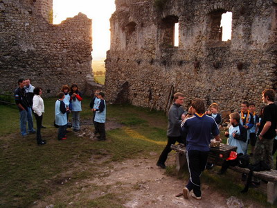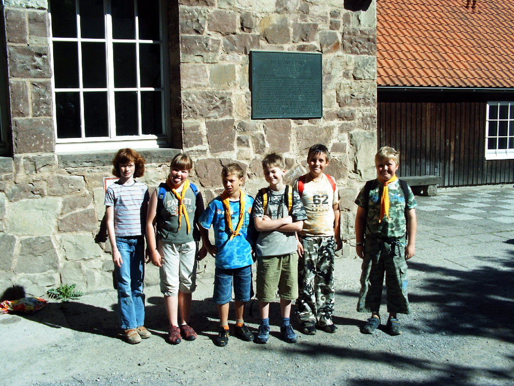 Zusammen mit den Meutenführern Schacki und Knopi eroberten Babette, Sophie, Eric, Luis, Simon und Fabian das alte Gemäuer und belagerten das Musikzimmer für ihre Unterkunft. An Aktivitäten stand pflichtgemäß der Hajk auf die Burg Hahnstein an, wobei die Hessisch-Thüringische Grenze und somit die historische Grenze der beiden Deutschen Staaten überquert wurde. Natürlich durften auch zahlreiche Besuche in das Burgschwimmbad, eine Burgrally oder eine Abendwanderung in Richtung Witzenhausen nicht fehlen. Auf dem Turm der Hahnstein gab es - nachdem nicht endend wollende Besucherströme mit “spannenden” Geschichten an den Wölflingen vorbeigezogen sind - eine Aufnahme in die Pfadfinderei mit gelben Halstüchern statt, was für die meisten Teilnehmer der Fahrt der Höhepunkt gewesen sein dürfte.