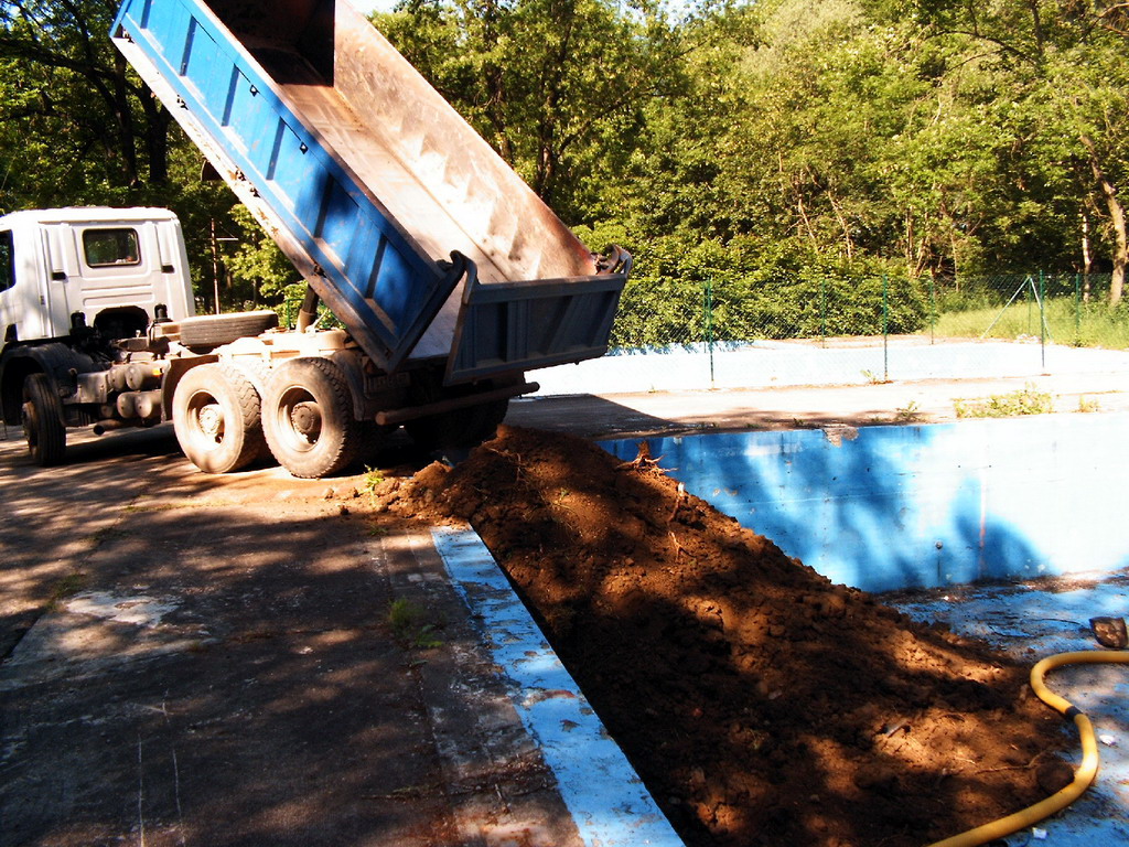 Rund 5 Jahre nachdem das Neudietendorfer Schwimmbad geschlossen wurde, wird jetzt (seit dem 21.06.2006) das ehemalige große Becken verfüllt. Gleichzeitig verschwindet die weitläufige Betonfläche.