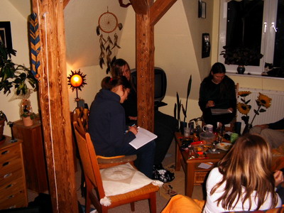 Am 20.10 gegen 13:30 Uhr machten wir (ike, Janek & Förbi) uns vom Centrum aus los um zum Bahnhof zu kommen. Als wir in den Zug einsteigen wollten, haben wir uns kurzerhand dazu entschieden den nächsten zu nehmen, da uns der erste eindeutig zu voll war! Angekommen am Bahnhof in Sömmerda lasen wir uns die Anmeldung nochmals durch, um zu schauen wo wir lang mussten. Wenige Minuten später wussten wir, das die Strecke nicht ausgeschildert war, wie wir angenommen hatten. Also riefen wir Jacky an. Nach dem wir den Weg einigermaßen wussten, liefen wir los. Angekommen am vereinbarten Treffpunkt mussten wir mit Erstaunen feststellen, dass wir die erste Gruppe waren. Damit hatten wir auch das Vergnügen alles mit aufzubauen. Nach dem wir alles vorbereitet hatten, kam dann auch die Jenaer Gruppe (Nunu & Feit). Wir machten eine kurze Runde, wo erläutert wurde was so das Lager über ansteht. Zu späterer Stunde aßen wir in der von uns aufgebauten Jurte Abendbrot. Nach der Abendrunde sangen wir noch ein bissel in der Jurte und gingen nach und nach allmählich in die Kohten. Am nächsten Tag gab es wie immer die Morgenrunde und dann Frühstück. Nach dem Frühstück pusteten wir nochmals das Schlauchboot auf und machten uns los zum Wasser (Unstrut) um paddeln zu gehen. Nach dreistündiger Fahrt hatten wir allmählich Hunger und entschlossen uns kurzerhand anzuhalten um Essen zu machen. Mit Entsetzen mussten wir feststellen, das wir kein Wasser zum Kochen mehr hatten, also machte ike mich los mit Förbi um im nächsten Ort Wasser zu holen. Wieder angekommen am Essplatz kochten wir uns eine Suppe. Nach dem Essen machten wir wieder los, der Unstrut runter. Nach nochmals zweistündiger Fahrt suchten wir einen Steg um das Boot aus dem Wasser zu holen. Wenige Minuten später kam Sonne und holte das Boot und Lüder ab. Nunu, Feit, Förbi, Janek und* ike* machten uns also los. Nachdem wir cirka eine Stunde liefen, machten wir Halt und bauten die Kohte auf und machten Feuer. Nach dem Essen legten wir uns hin und hatten noch viele spaßige Stunden im Zelt, bevor wir alle einschliefen. Am nächsten Morgen weckte uns netterweise viel zu Früh ein Kuhhirte, der seine Kühe nicht unter Kontrolle hatte. Nachdem wir eh wach waren, aßen wir schnell eine Kleinigkeit und bauten das Zelt ab, um möglichst schnell los zu kommen. Die Rucksäcke waren gepackt, also machten wir los. Nach dreistündiger Wanderung mit zwei Pausen kamen wir gemächlich am Zeltplatz in Sömmerda an und mussten feststellen, dass nichts zu Trinken da war, da wir viel zu Früh ankamen. Mit einer Stunde Verspätung kamen dann auch die Herschafften von der CPA. Nach einer kurzen Vorstellungsrunde aßen wir gemütlich Abendbrot. Nach zehnminütiger Pause machten wir Abendrunde in der Jurte. Nach viel Gelache und Gesinge machten wir uns nach und nach in die Kohten, da wir noch vom Vortag fertig und geschlaucht waren. Nach dem Aufstehen machten wir wie immer eine Morgenrunde zum Aufwachen und Locker werden. Dann, nach dem leckeren Frühstück von unserem Starkoch, machten wir den Tag über Workshops für Klein und Groß. Nach den ersten Workshops aßen wir Mittag und besprachen den weiteren Tagesablauf. Dann ging es auch gleich mit den Workshops weiter. Nach getaner Arbeit aßen wir Abendbrot (irgendwie dreht sich hier alles ums Essen) und machten wie jeden Abend einen Jurtenabend mit lustigen Spielen, Singerunden und Vorschlägen für den nächsten Tag. Ab 12 Uhr mussten die Jüngeren in den Schlafsack in ihre Kohten und die Älteren saßen noch bis in die späten Abendstunden in der Jurte und sangen und redeten bis alle zu müde waren und schlafen gingen. Am nächsten Morgen gab es wie immer die Morgenrunde, wo wir erfahren durften das ein Kamerateam vorbei kommt um ein kurzes Interview zu machen. Aber erstmal aßen wir Frühstück und besprachen alles. Nach dem Frühstück machten wir uns an die Arbeit das Lager Stück für Stück wieder abzubauen, denn es war der letzte Tag des Lagers. Nach Abbau von den Kohten und dem Küchenzelt kam dann auch das Kamerateam und machte seine Interviews mit einzelnen Personen. Später bauten wir die Jurte ab und alle halfen das Grundstück nach Müll abzusuchen. Als Nico dann kam um das Material abzuholen, halfen alle mit um es so schnell wie möglich in das Auto zu bekommen. Nach einer großen Abschlussrunde machten wir uns nach und nach auf den Heimweg. Da wir nur wenig Geld zur Verfügung hatten, bot uns Udo an, uns mit dem Auto mitzunehmen, was wir natürlich nicht ablehnten! Also fuhren wir los und ließen die wunderbaren Herbstlagergedanken uns noch einmal durch den Kopf gehen um mit einen guten Gefühl wieder in den Alltagsstress zurück zu fahren! -ENDE-