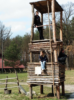 Mit Fahrrädern gewappnet war das Ziel nach einer abenteuerlich verlängerten Bahnfahrt das dortige Pfadfinderzentrum (Stanica Harcerska) “Zielona Polana” unweit des Sees Piaski. Dort angekommen empfing uns Gofry (Paweł Sobczak), der Leiter der Stanica und Gleichzeitig der Stammesführer des Stammes “3 Drużyna Wędrownicza im. Zawiszy Czarnego”. Zusammen mit seiner Gruppe, zu der jetzt auch Krystian gehört, der auch schon zu Besuch in Neudietendorf war, kümmerte dieser sich so gut um die deutschen Gäste, wie er konnte. Polnische Gastfreundschaft eben! Logisch, das die Neudietendorfer das erwiederten und so gab es nicht nur einen Wettbewerb in einem sehr beliebten polnischen Pfadfinderspiel, den die polnischen Scouts haushoch gewonnen, sondern auch gemeinsame Abende am Grill oder am Lagerfeuer. Da es in Polen keine Osterferien gibt, nutzen die Raubwürger die meisten Tage für ihr eigenes Programm. Hierzu zählten natürlich einige Fahrradhajks, der Besuch eines Schwimmbades (hier handelte es sich um ein Militärschwimmbad), eine Wanderung um den See, eine Waldläuferzeichenrally oder die Erkundung der Innenstadt von Ostrów Wlkp. Logisch, das auch das Essen selbst zubereitet werden musste. Und auch wenn die Sippe in der Halle des Pfadfinderzentrums auf Feldbetten am Lagerfeuer schlafen durfte, wurde die mitgebrachte Kohte aufgebaut, um den Gastgebern die Zelte der deutschen Pfadfinder vorzustellen. Am Rande des Abschlussabends wurde zwischen Paweł Sobczak und Hendrik Knop eine Zusammenarbeit zwischen den beiden Pfadfinderzentren in Ostrów Wlkp. und Neudietendorf vereinbahrt, die mit der Eöffnung des Pfadfinderzentrums “Fritz Riebold” in Neudietendorf starten soll. Kurze Zeit nach Pfingsten wurde die Sippe Raubwürger aufgelöst, sodaß diese Fahrt die letzte gemeinsame Aktion der Gruppe war.