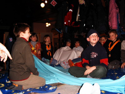 Hier ging es dann auch zur Sache, denn das Team rund um die neuen LB Wölflinge Susi und Nicole ließen sich so einiges einfallen um die abenteuerlustigen Wölflinge vom Stamm Falken vom Greifenstein aus Bad Blankenburg, vom Stamm Columbus aus Jena, vom Stamm Drei Gleichen aus Neudietendorf und vom Stamm Bonifatius des Pfadfinderbundes Weltenbummler aus Georgenthal zu begeistern. Neben jeder Menge Winteraktivitäten, wie Rodeln, einer Schneeballschlacht oder einem Schnee-Nacht.Versteckspiel, sollten auch die Kreativen Adern der jüngsten Stufe im Bund angesprochen werden. Und so wurden Spiele aus eigener Erfindung in vielen Farben gezimmert. Natürlich durften auch viele Spiele und Geschichten aus dem Dschungelbuch oder von Alfons Zitterbacke, erzählt in der Kuschelecke, nicht fehlen. Hinzu kam noch ein kleines Geländespiel, bei dem es darum ging, so viele verschiedene Karten wie möglich zu unterschreiben, die überall rund um das Gebäude und im Wald verteilt waren. Als Sieger ging hier Felix vom Stamm Drei Gleichen hervor. Aber auch die Ideen der Morgenrunden blieben dem einen oder anderen etwas länger in Erinnerung. Bei soviel Aktionen stellte sich natürlich auch Hunger ein, gegen den das Küchenteam der Bad Blankenburger gute Rezepte hatte. Insbesondere der HOT DOG am letzten Tag ließ den Schmerz über den Abschluß des viel zu kurzen Wochenendes vertrösten.