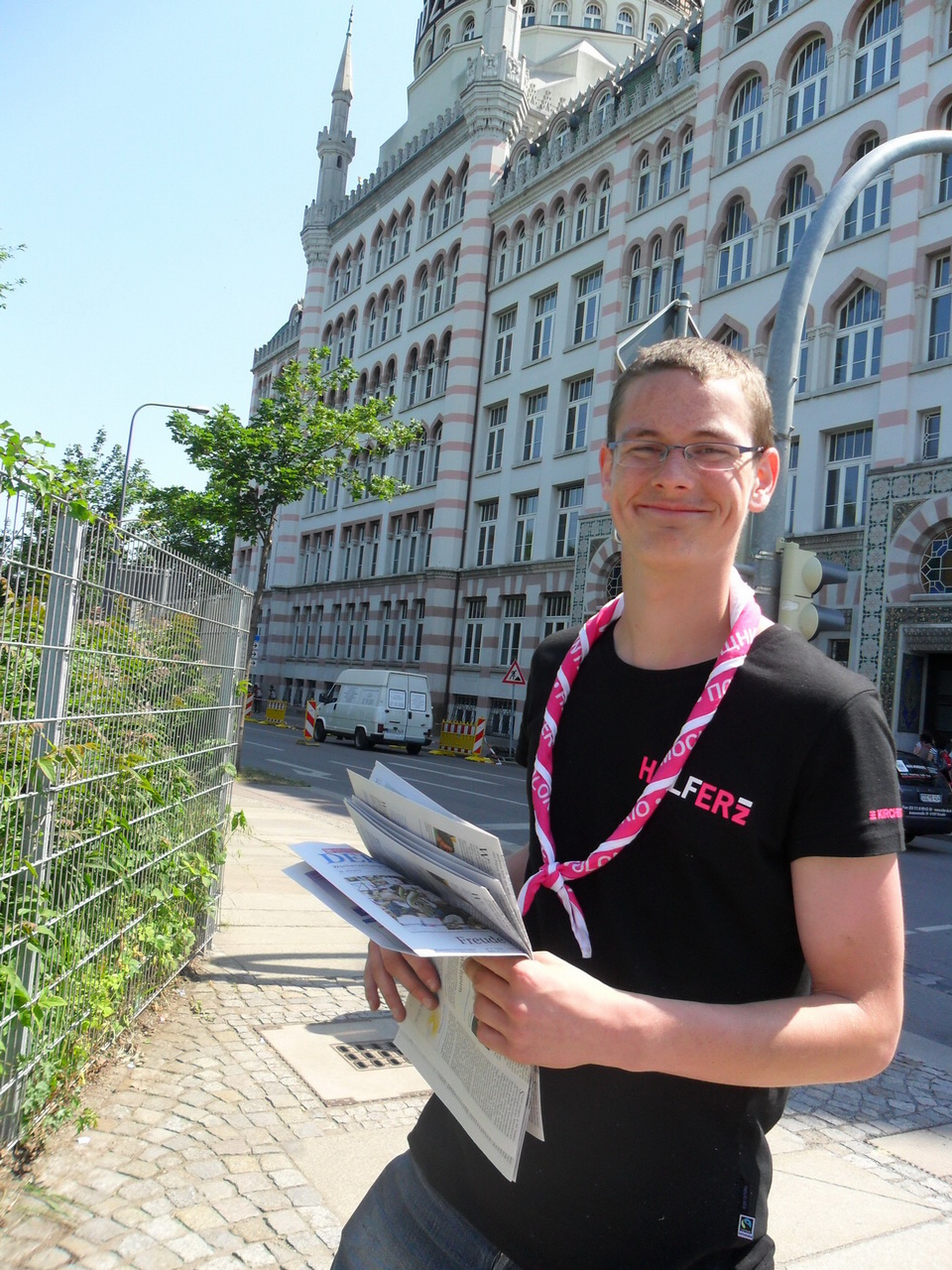 Mit sieben Teilnehmerinnen und Teilnehmern war die Helfergruppe des VCP’s aus Nesse-Apfelstädt sowie Gästen im Einsatz. Aufgabe war es, die Kirchentagszeitung sowie weitere Publikationen mit Hilfe von Bollerwagen zu verteilen, um den Besuchern den notwendigen Durchblick zu verschaffen. Darüber hinaus gaben die Helfer zahlreiche Auskünfte und wiesen dem ein oder anderen Gast den Weg zur Messe oder zur nächsten Veranstaltung. Neben dem Helferdienst blieb genügend Zeit, sich selbst in das Kirchentagsgewimmel mit den zahlreichen Angeboten, Ausstellungen und Veranstaltungen zu stürzen. Das Elbufer bot dabei insbesondere für die Großveranstaltungen, wie die Eröffnung oder den Abschlussgottesdienst eine traumhafte Kulisse. Für gute Stimmung sorgte das Konzert der Wise Guys, wenn es aufgrund der vielen Besucher auch nur die Übertragung neben dem Stadion sein konnte. Besonderen Eindruck hinterließen schließlich die zahlreichen Begegnungen mit den freundlichen Dresdnern, den vielen fröhlichen Kirchentagsbesuchern oder der Kontakt mit den anderen Helfern, sei es bei der Helferparty oder beim abendlichen Singen von bündischen Liedern in der Gaststätte “Zum Bautzener Tor”.
