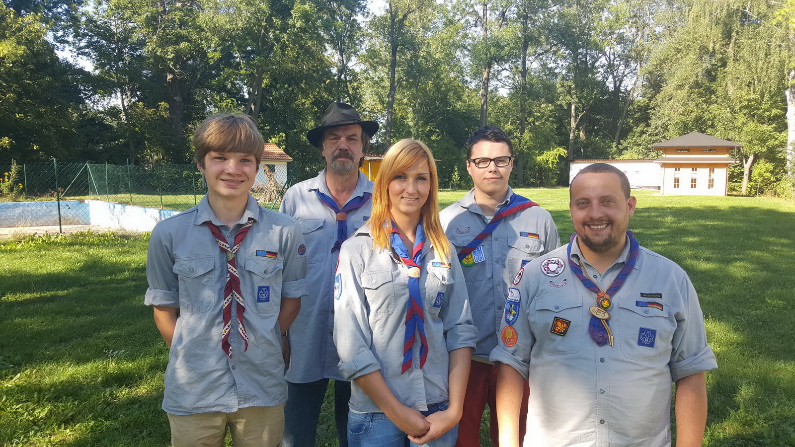 Gewählte Stammesleitung des VCP Stamm Drei Gleichen: Clemens Riese, Michael Göring, Nancy Linßer, Scott Quade und Udo Wich Heiter (v.L.n.R.)