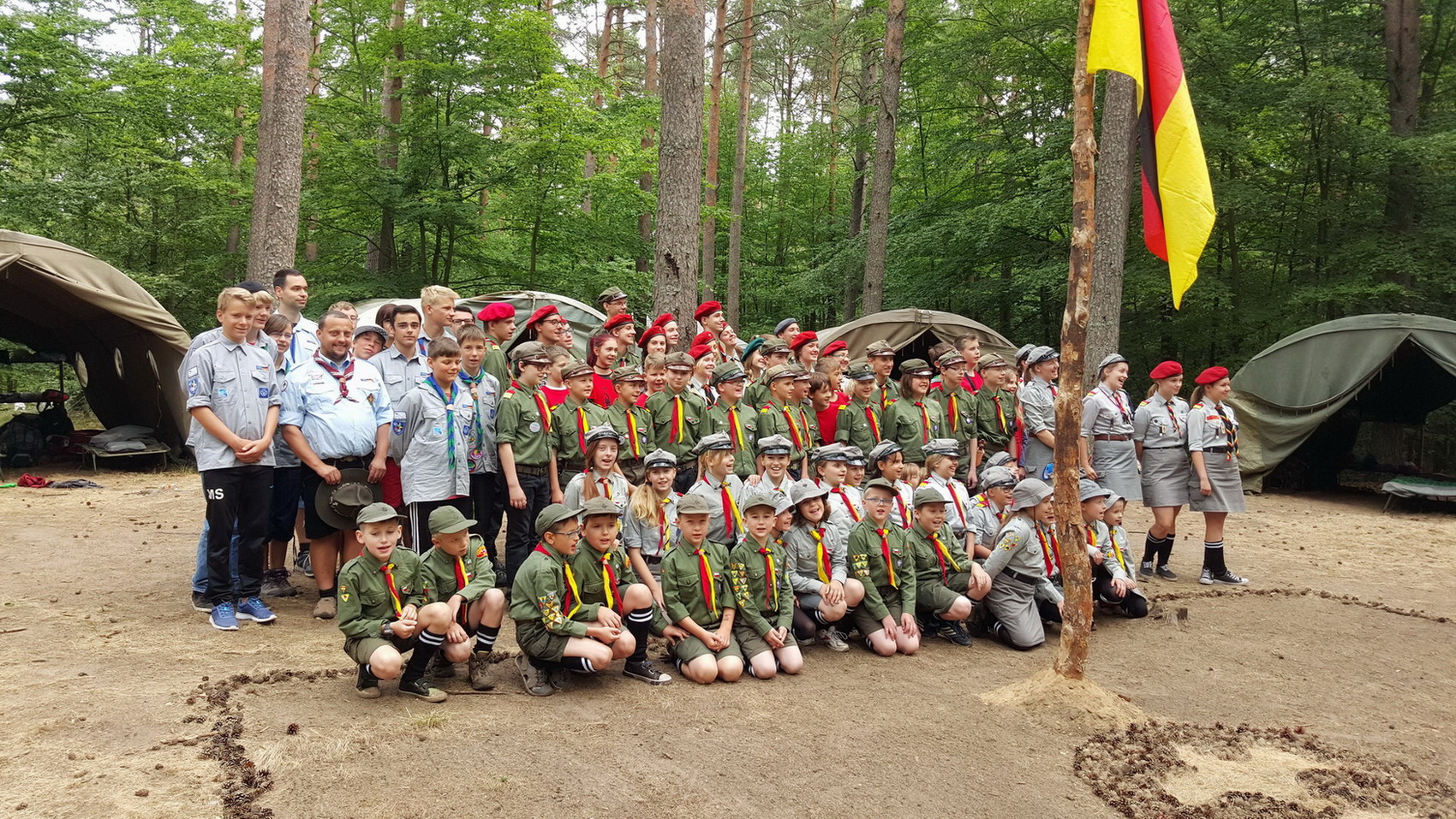 **Vom 11. bis 19. Juli 2015 kamen sie zusammen, die Polnischen Pfadfinderinnen und Pfadfinder des Związek Harcerstwa Polskiego (ZHP) Stamm Zawisza aus Bydgoszcz und die Deutschen Gruppen des Verband Christlicher Pfadfinderinnen und Pfadfinder (VCP) Stamm Drei Gleichen aus Nesse-Apfelstädt und dem Stamm Thüringer Wanderfalken aus Gotha sowie dem Verband Deutscher Altpfadfindergilden e.V. (VDAPG) Gilde Drei Gleichen aus Nesse-Apfelstädt. ** Sie hatten Tränen in den Augen, als es hieß, sich am Abreisetag voneinander zu verabschieden. Längst vergessen waren die Vorurteile von überpünktlichen Deutschen oder „klauenden“ Polen. Was nun zählte, waren entstandene Freundschaften zwischen den Pfadfinderinnen und Pfadfindern aus Bydgoszcz und Neudietendorf, die Frage, wann und wo man sich wieder sieht sowie Erinnerungen an neun gemeinsam verbrachte Tage im naturbelassenen Pfadfinderzentrum Próchnówko unweit von Piła in der Einöde Nord-West-Polens. Und Erinnerungen gibt es genug. Etwa an ein sehr traditionelles „scoutistisches“ Pfadfinderlager mit Frühsport und Morgenapell, wie es in Deutschland eher unüblich ist. Erinnerungen an ein vielfältiges Programm, zu dessen Highlights ein Dorf-Erkundungsspiel, der Bau von Totems, Balancieren auf der Slagline, ein Volleyballmatch, der Besuch eines Indianerdorfes, eines Reiterhofes sowie eines Bison-Parks, Sport an einer Kletterwand und im Schwimmbad, Nordic Walking und oder das Spielen von Theater zählten. Erinnerungen an viele gemeinsame Abende am Lagerfeuer mit Gitarre und dem Singen von Polnischen und Deutschen Pfadfinderliedern. Erinnerungen an leckeres polnisches Essen von Bigos über Schnitzel bis zu gegrillten „Krakauern“. Und eben schließlich die Erinnerungen an offene, freundliche und hilfsbereite Menschen, mit denen es galt, gemeinsam Spaß zu haben, Abenteuer zu erleben oder einfach nur eine schöne Zeit zu genießen. Es versteht sich von selbst, dass eine Einladung nach Deutschland bereits ausgesprochen wurde. Und so hieß es zum Abschied „nur“ Auf Wiedersehen!