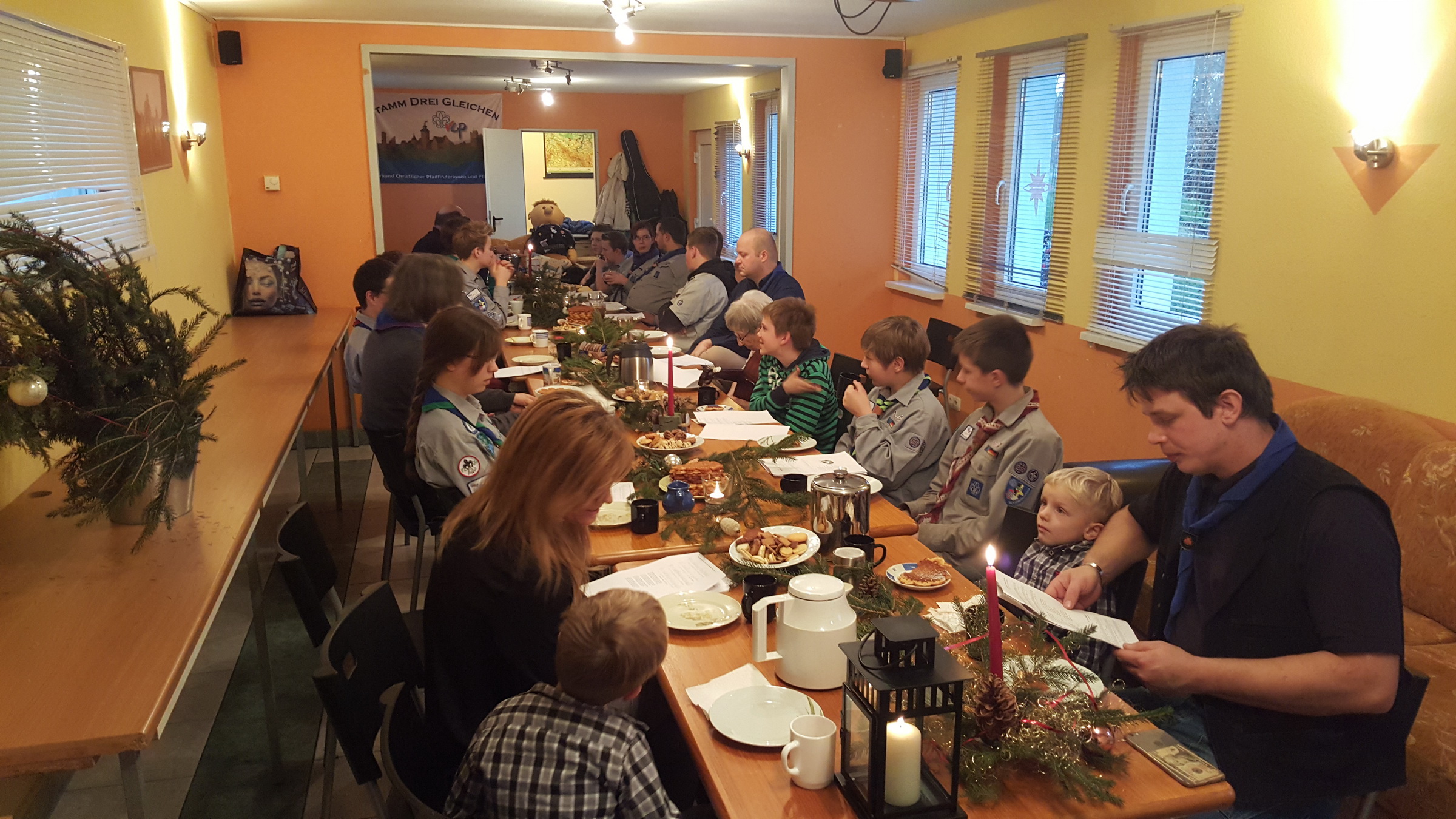 Begeisterte Stimmen drangen am Nachmittag des 4. Advents aus dem Neudietendorfer Pfadfinderzentrum, als hier Jung und Erfahren zur gemeinsamen Weihnachtsfeier des Verbandes Christlicher Pfadfinderinnen und Pfadfinder e.V. Stamm Drei Gleichen und der Verband Deutscher Altpfadfindergilden e.V. Gilde Drei Gleichen zusammenkamen.