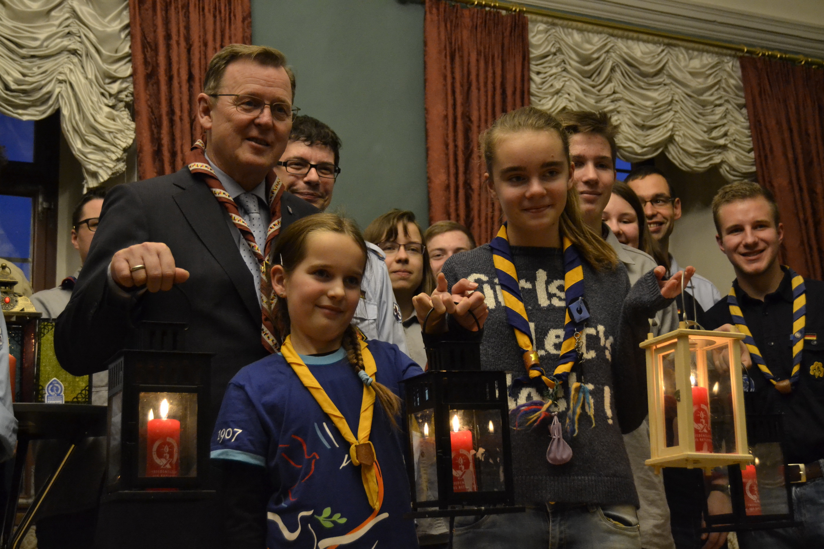 Ministerpräsident und Pfadfinder Bodo Ramelow übernimmt das Friedenslicht für den Freistaat Thüringen
