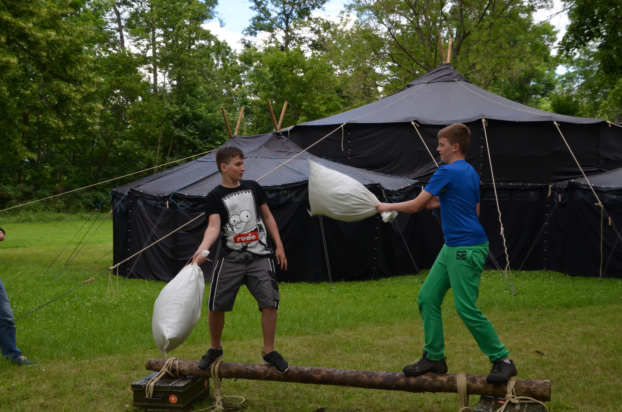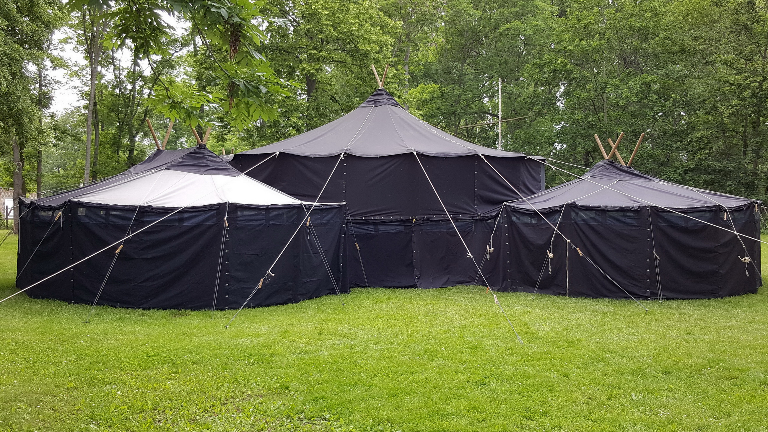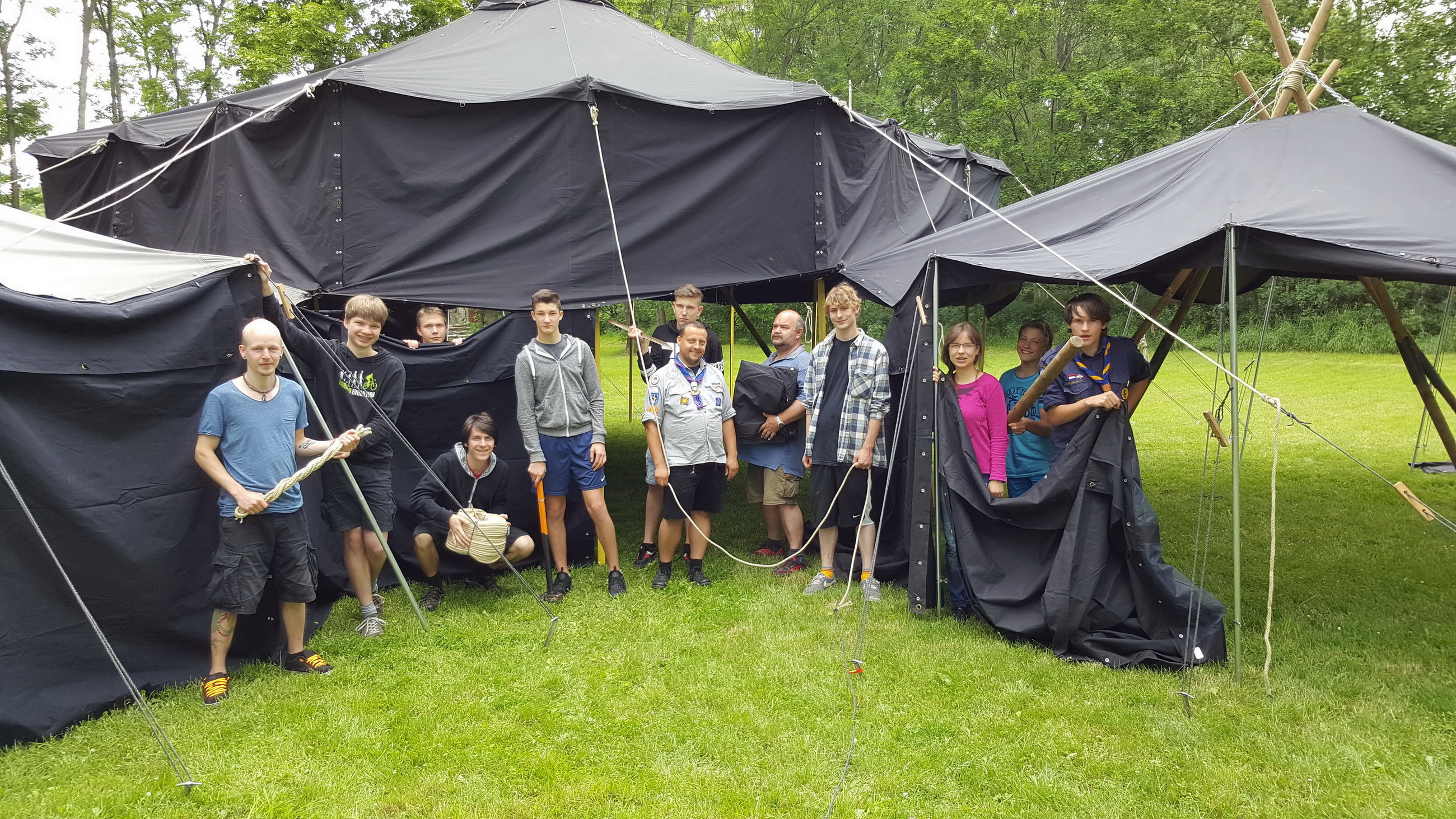 Um das große Jubiläumswochenende vom Freitag, dem 17. bis Sonntag, dem 19. Juni 2016 vorzubereiten, haben die Pfadfinderinnen und Pfadfinder bereits an diesem Wochenende eine große Zeltkonstruktion aus Jurten- und Kohtenplanen im Pfadfinderzentrum Drei Gleichen aufgebaut.