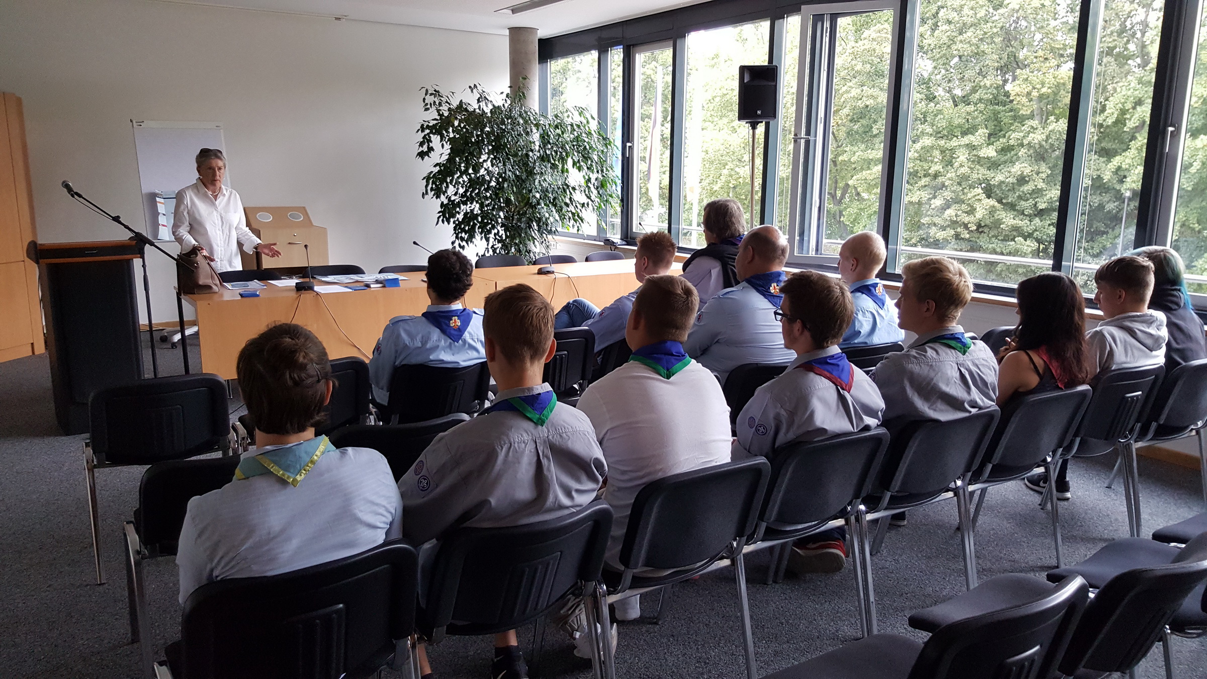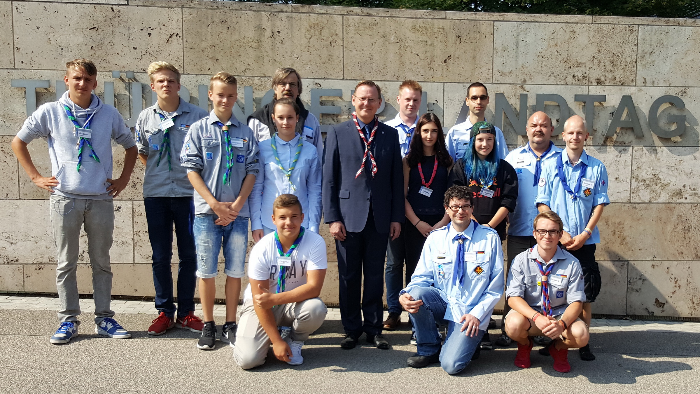 „Auf den Spuren der Demokratie“ führte es die Nesse-Apfelstädter Pfadfinderinnen und Pfadfinder am Donnerstag, dem 1. September 2016 in den Landtag des Freistaates Thüringen. Neben der Teilnahme an der laufenden Plenarsitzung war es den 13 Scouts möglich, ins Gespräch mit dem ehemaligen Pfadfinder und heutigen Ministerpräsidenten Bodo Ramelow zu kommen.